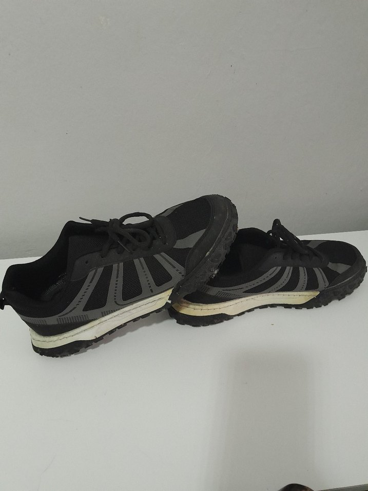 Siyah ve gri renklerde, kauçuk tabanlı ve bagcikli erkek spor outdoor ayakkabı. Trendy casual sokak giyimi için uygundur. agirdir ayakkabi