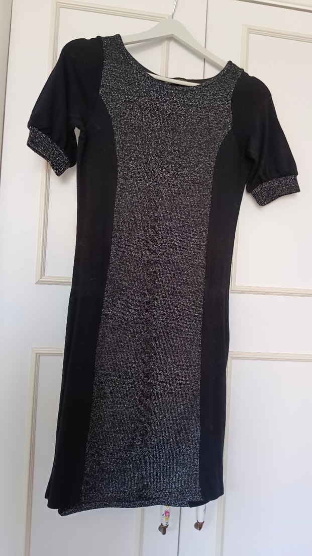 Siyah Gri Kısa Kollu Triko kısa Elbise