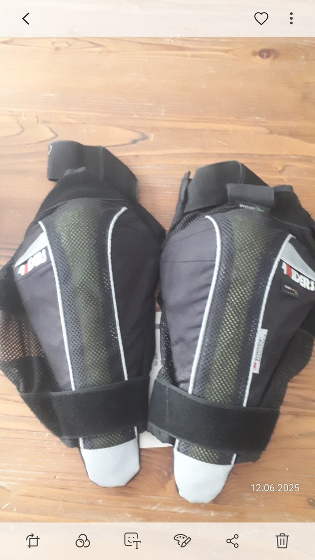 Velcro bantlı, siyah gri sentetik kumaştan motosikletçi diz koruyucuları. Athleisure tarzına uygun.