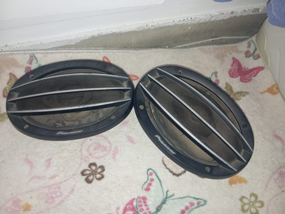 Koruyucu ızgaralı siyah gri müzik sistemi hoparlörleri, şık tasarıma sahip. Ses kalitesini artırmak için uygun.