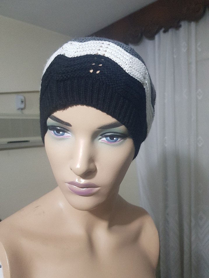Siyah ve gri renklerde örgü yapılı kadın bere, rahatlığı goth tarzıyla birleştirir, şık ve avant-garde görünüm sunar.Beden bilgisi bulunmamaktadır,ölçüleri görsellerdedir.