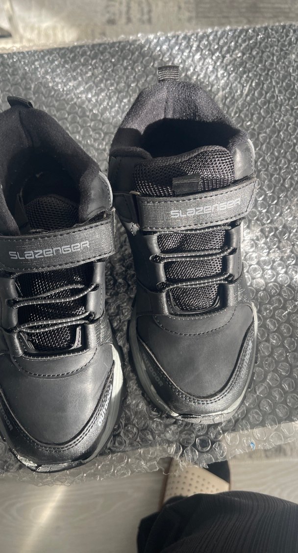 Slazenger marka, siyah ve gri renkli, cırt cırtlı erkek çocuk spor ayakkabısı. Dayanıklı kauçuk tabanlı, trend sokak stili için uygun. Ürün hiç kullanılmadı