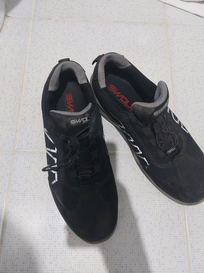 Siyah ve gri renkli SWOLX erkek spor outdoor ünü çelik korunaklı İŞ ayakkabı. Kauçuk tabanlı, baskılı desenli, trend spor tarzına uygun. Bi iki kez kullanıldı saglam
