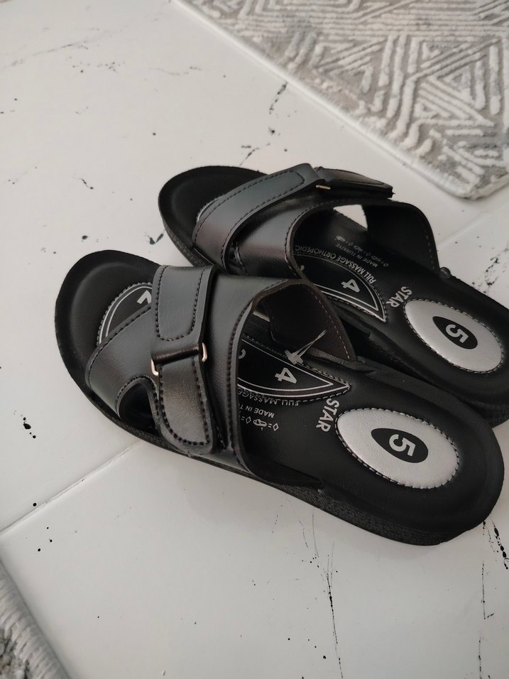 Siyah ve gri renkte, tokalı kayışlara sahip kauçuk erkek terlik. Minimalist sokak stili için uygun, trend rahat kullanım sağlar.