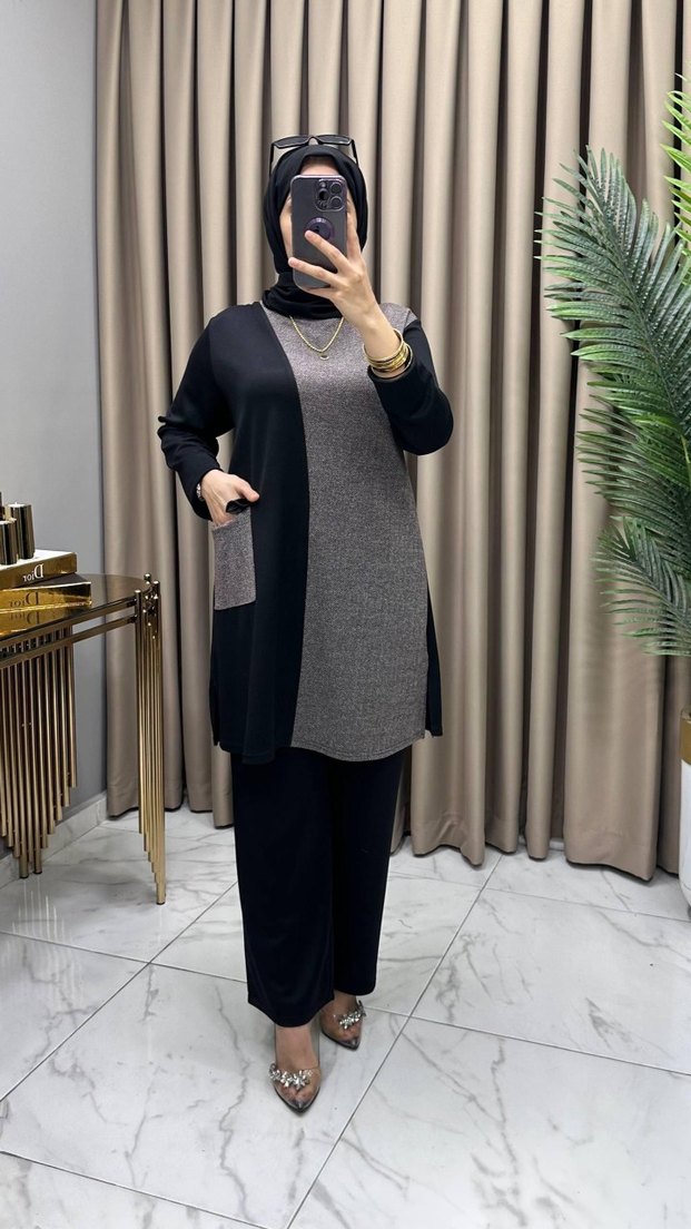 Kadın takımı, regular fit, uzun kollu ve yuvarlak yakalıdır. Siyah ve gri sentetik kumaştan, desen içermeyen tasarımıyla günlük iş stiline uygun, trend casual görünüm sunar. Rahat şıklık katmaktadır. 54 bedene kadar bedenler Aysu Takım Kod 5007 Kristal Belis pamuklu kumaş, likralıdır, Terletme yapmaz, Cepli Tunik boy 95 cm Beli lastikli Pantolon boy 102 2 beden 40/42 3 beden 44/46 4 beden 48/50 5 beden 52/54 Kargo ve Kapıda Ödeme Ücretsiz Takım Fiyat 1500 tl