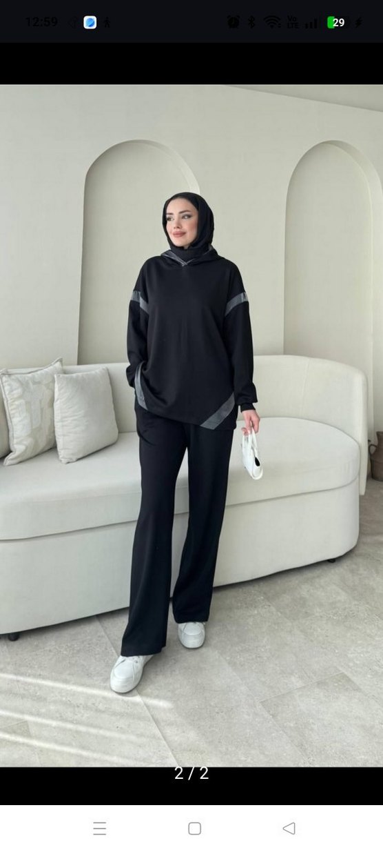 Siyah ve gri renklerde, uzun kollu rahat kesim kadın takımı. Yumuşak ve sıcak kumaştan, günlük kullanıma uygun şık bir görünüm sunar.