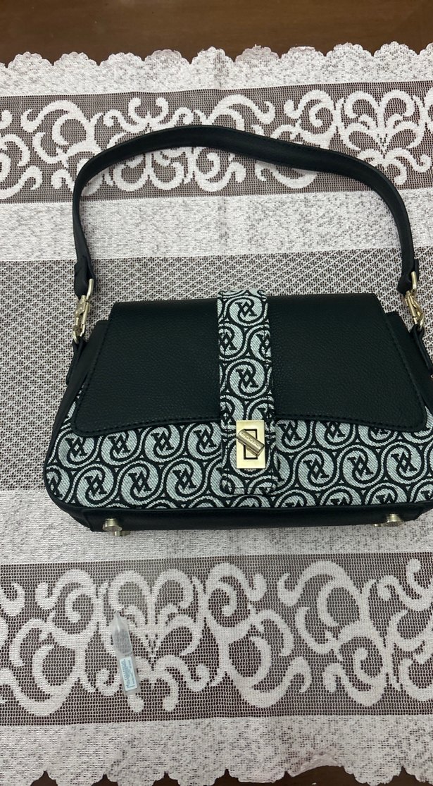 Kadın çantası, siyah ve gri yılan deseni ve tokalı kapak ile tasarlanmıştır. Sentetik kumaştan üretilmiş, modern klasik ve Paris tarzını yansıtır.