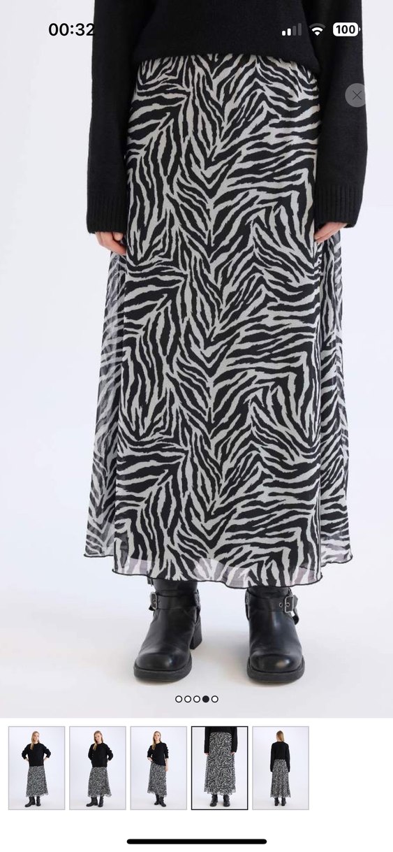 Siyah ve gri zebra desenli, kürk detaylı, sentetik kumaştan kadın uzun eteği. Salaş kesimiyle günlük rahat şıklık sunar. Bir kez çok kısa süre giyildi yeni gibi