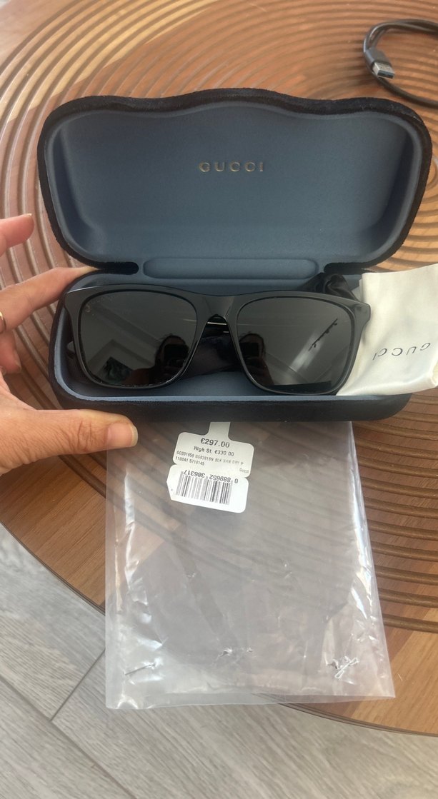 Parlak siyah Gucci kadın güneş gözlüğü, minimalist tasarımlı, trend sokak stili için uygun. Koruyucu kutu ve torbası ile birlikte.yurt dışından eşim için almıştım ancak yüzüne olmadı etiketi üzerinde