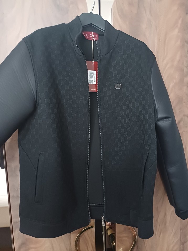 sıfır ürün Gucci Siyah erkek mont, crew yaka ve uzun kolludur. Regular kesim, fermuarlı ön ve hafif desenlidir, günlük kullanım için uygundur. XL uyuludur
