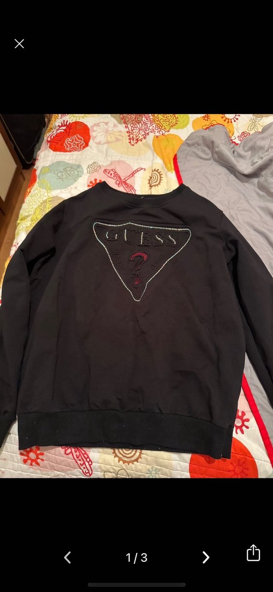 Siyah Guess baskılı, düğmeli detaylı, uzun kollu ve bisiklet yaka sweatshirt. Yumuşak ve sıcak kumaştan, günlük kullanıma uygun.