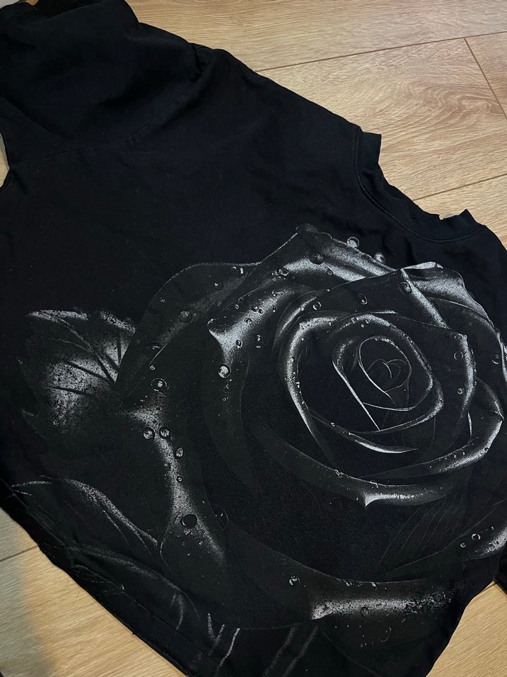 Siyah Gül Desenli BERSHKA CROP TSHIRT