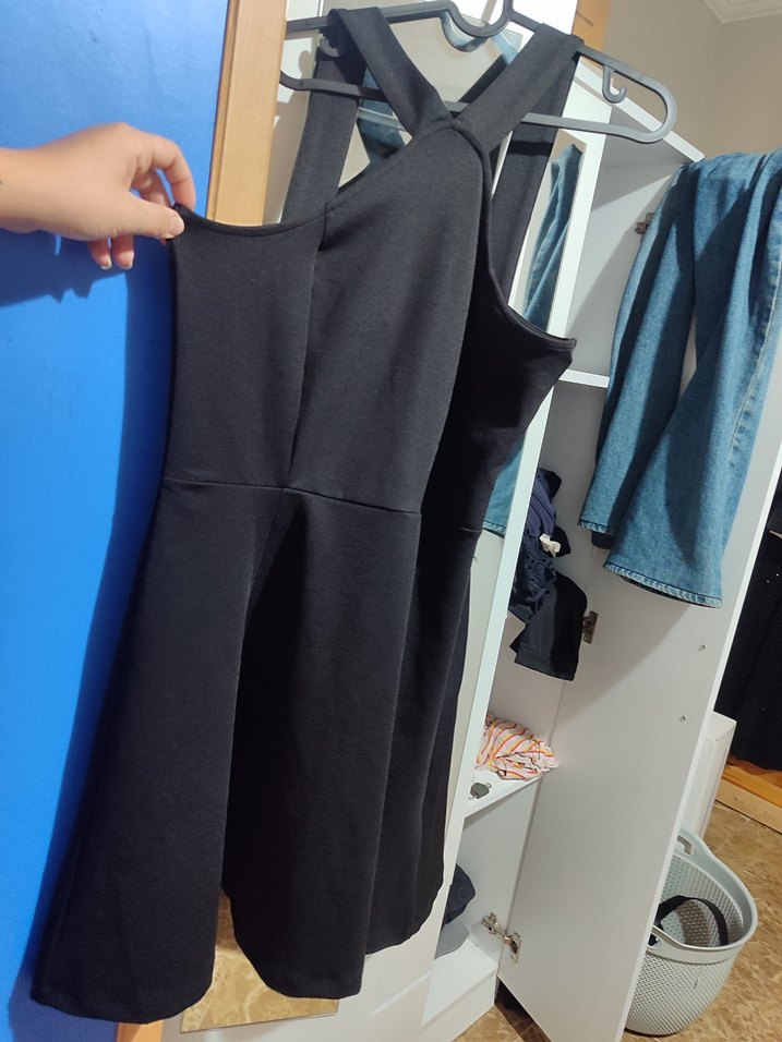 Önden çapraz askılı arkadan düz askılı. Kloş etekli elbise.