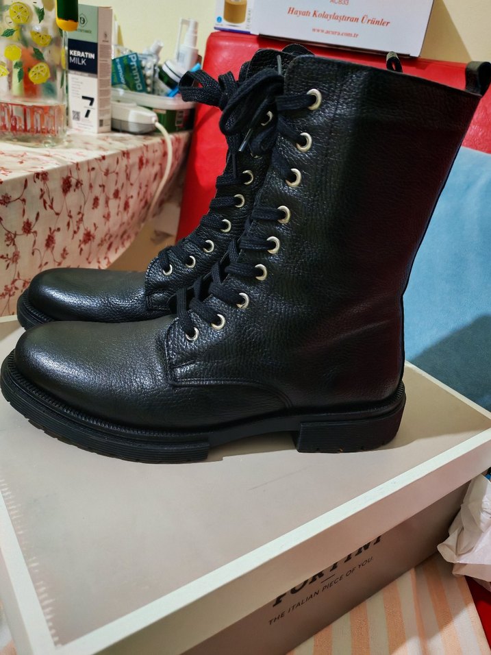 Siyah hakiki deri,rahat ve trend günlük kullanım için uygundur. Desensiz şık tasarıma sahiptir. 1 defa kullanıldı yenidir