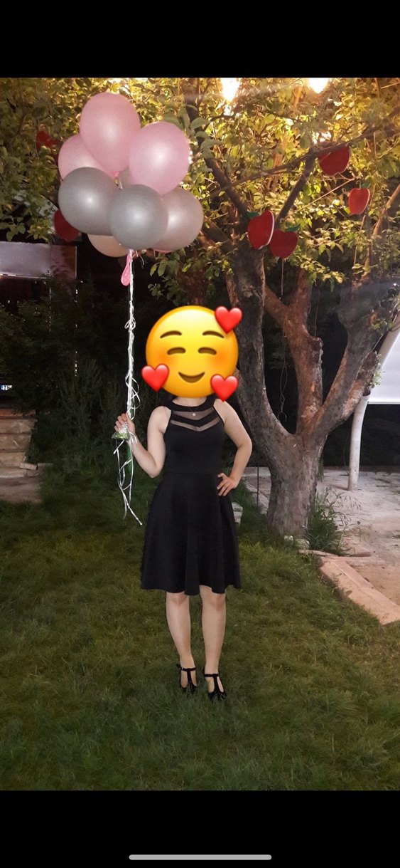 Siyah, halter yaka ve askılı kolları olan, mezuniyet elbisesi.