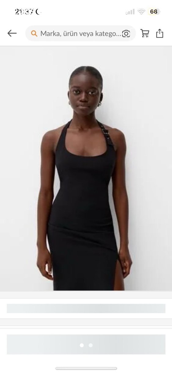Bu siyah, halter yakalı ve askılı, vücuda oturan triko elbise, yumuşak sentetik kumaştan üretilmiştir. Minimalist, gotik tarzıyla romantik akşamlar için şık ve rahat bir tercihtir. Midi boy ve yırtmaç detayı zarafet katar.