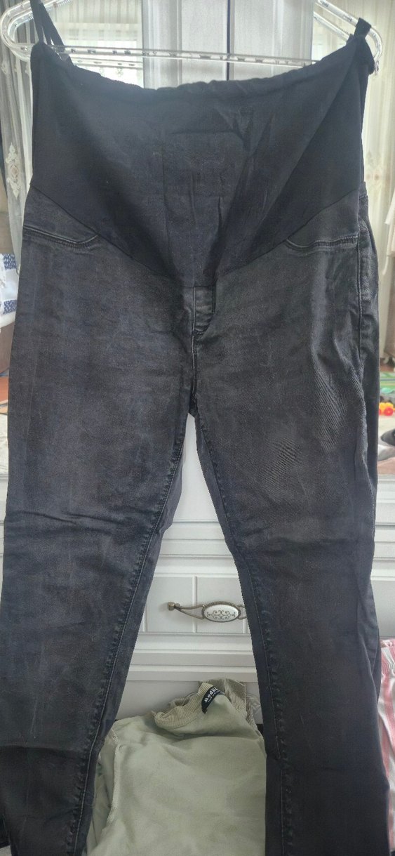 Siyah, belinde tokalı, normal boy midi kesim, dar kesim hamile denim pantolon. Günlük kullanıma uygun rahat ve trend tarzda.