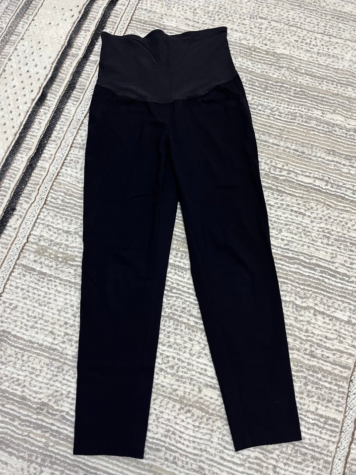 Siyah, rahat kesim ve normal boyda, sentetik kumaştan yapılmış hamile pantolonu. Günlük kullanım için sade ve şık bir tasarım.