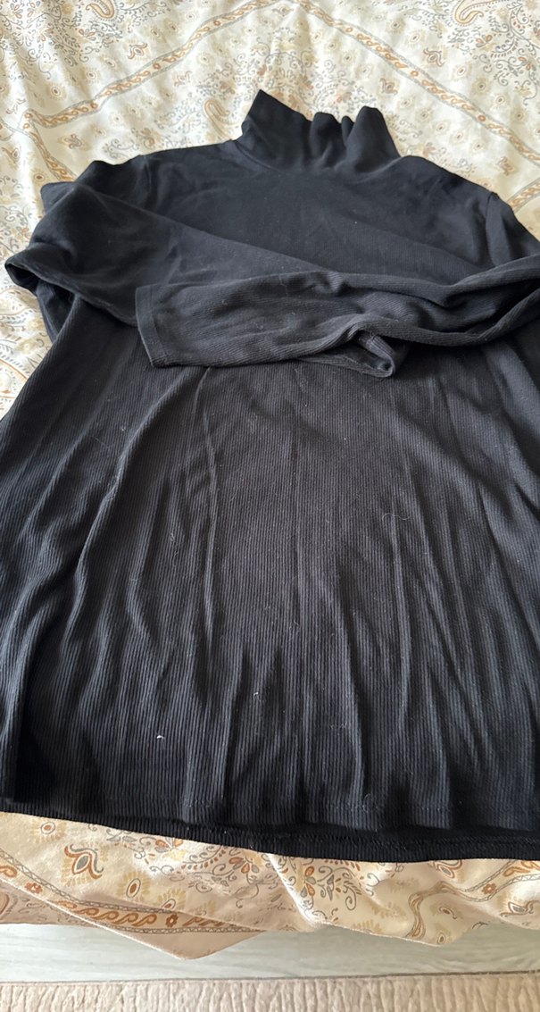 Siyah hamile tunik, drapeli ve boğazlıdır. Uzun kollu, bol kesim, keten kumaştan günlük kullanıma uygundur.
