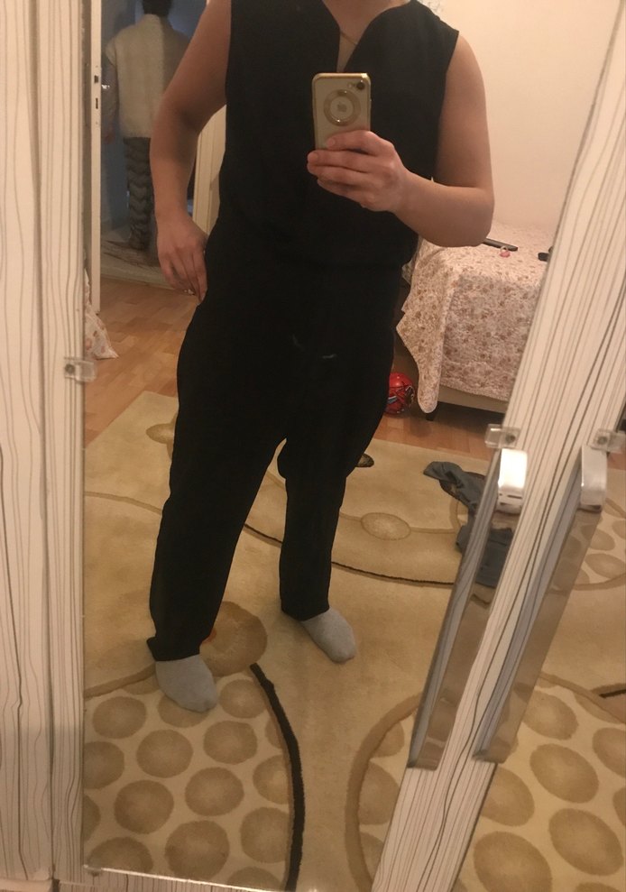 Siyah hamile tulumu, kolsuz ve notch yaka detaylıdır. Yumuşak ve sıcak kumaştan üretilmiş, günlük kullanıma uygun rahat ve şık bir tercihtir.