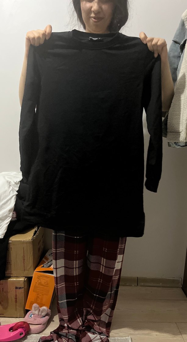 Siyah Hamile Uzun Kollu Salaş Tişört