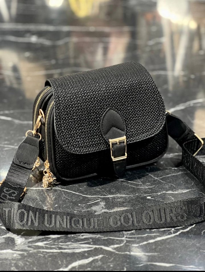 Siyah hasır görünümlü omuz askılı çanta sıfır paketli ürünler