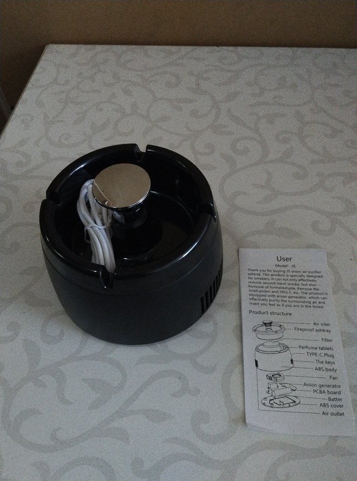 Kompakt tasarımlı siyah hava temizleyici ve nemlendirici. Kullanım kılavuzu ile kolay kurulum ve kullanım sağlar. Hava girişi, filtre ve USB fişi içerir. ️