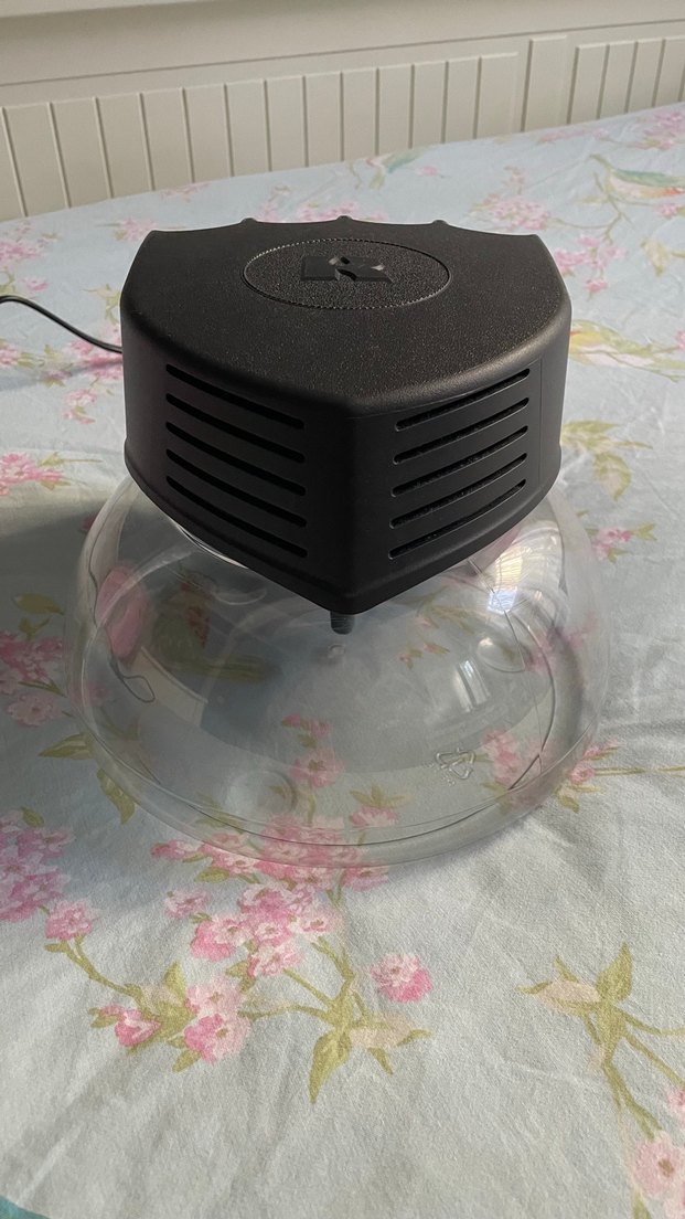 Siyah üst kapağa ve şeffaf su haznesine sahip hava temizleyici ve nemlendirici, hava kalitesini artırır ve nem sağlar.️ Rainbow markadır