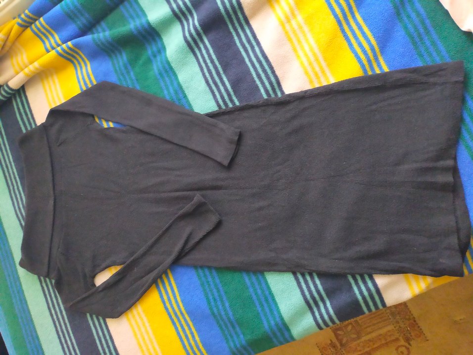 Siyah,uzun kollu, triko hamile Yumuşak örme kumaştan, diz altı boyda, rahat ve şık bir görünüm sunar.
