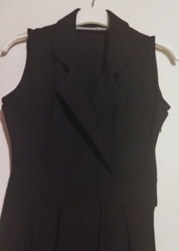 Belden kesik yan kısmında fermuar bele kadar etek kısmı arka ve ön pileli kaliteli kullanışlı buruşmayan koyu siyah elbise