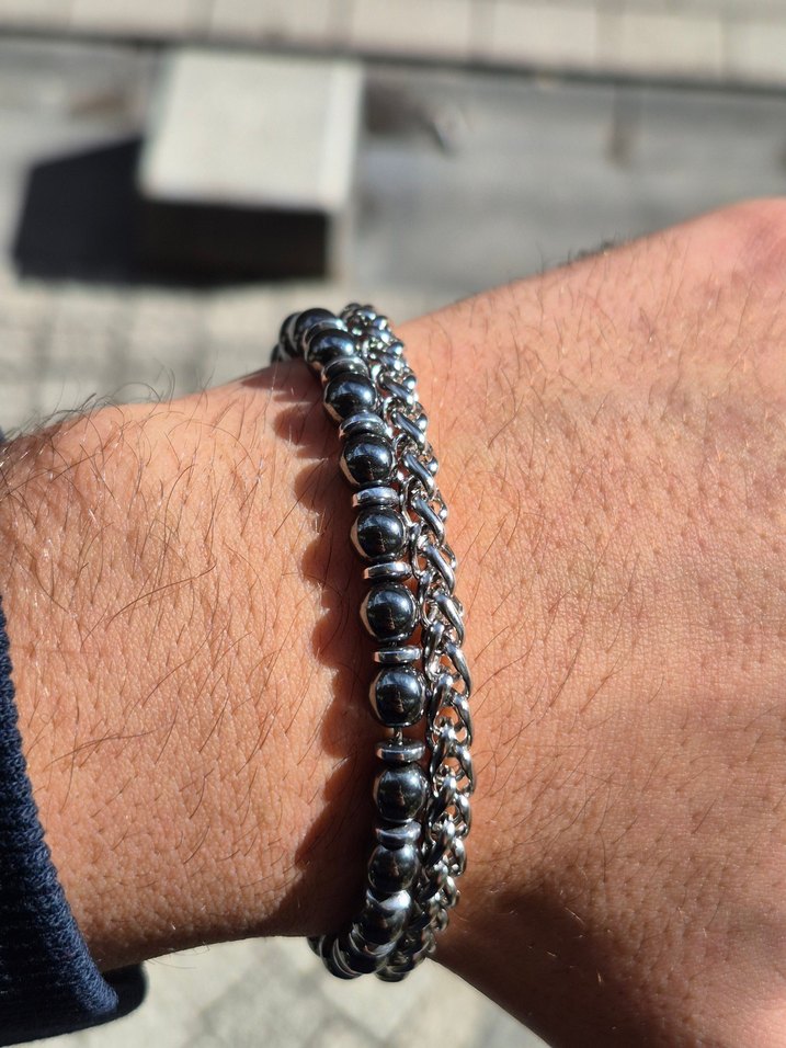 Siyah Doğal Hematit Taş ve Zincir Çelik Bileklik 316L Çelik Sipariş oluştururken Lütfen açıklama/Not kısmına bilek ölçünüzü yazınız.