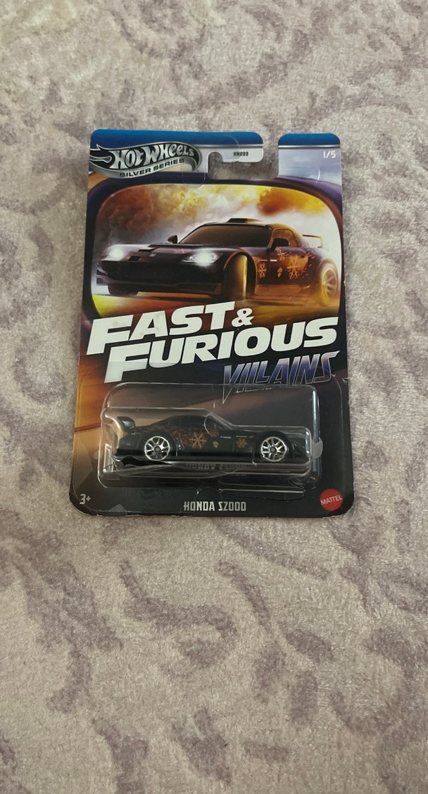 Fast & Furious Villains serisinden siyah renkli Hot Wheels Honda S2000 oyuncak araba, 3 yaş ve üzeri için uygundur.