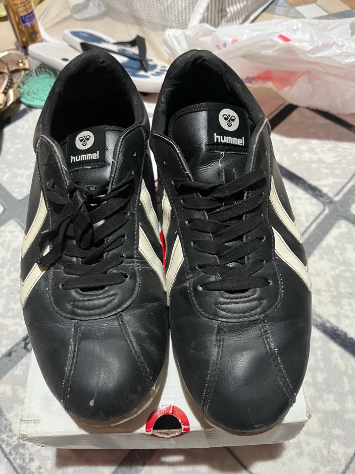 Siyah Hummel orjinal spor ayakkabı dış görünüşünde bir problem yok tekinde alt kısımda açılma var uğraşmak istemediğim için satıyorum