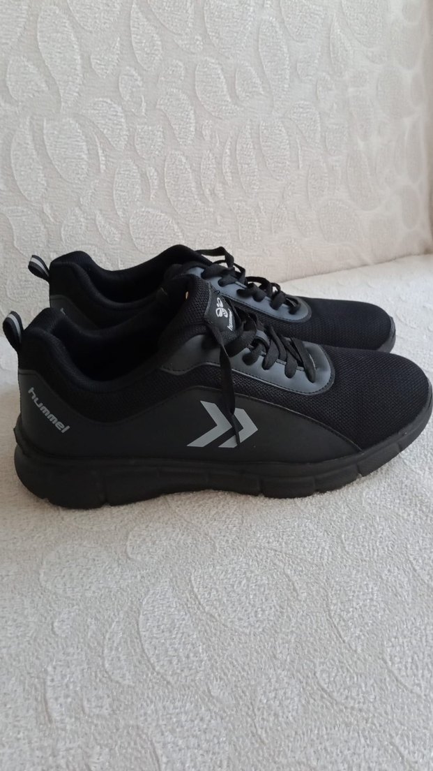 Siyah Hummel erkek spor ayakkabı, velcro ve bağcıklı kapama, kauçuk tabanlı, trend sokak giyimi için uygun. ♂️ bir kere giyildi