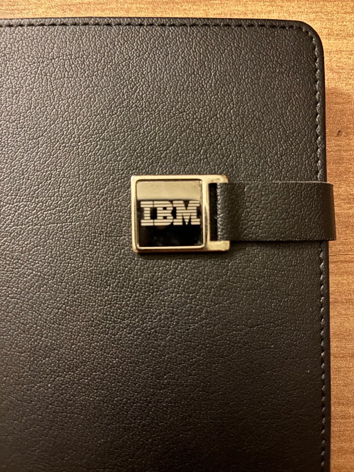 Kapaklı, metal tokalı siyah 111 yaprak defter. IBM logosu bulunur, şık ve kompakt tasarım.