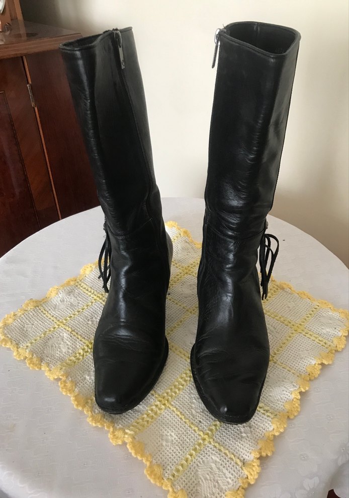 Siyah iç dış deri Topuklu Çizme
