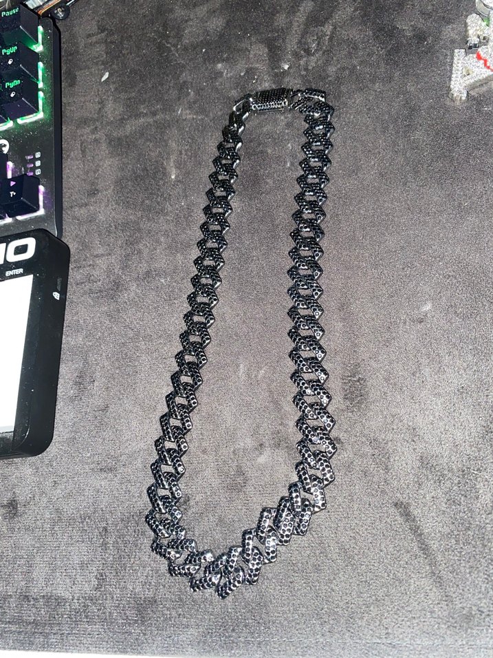 siyah iced out taşlı cuban link kolye.