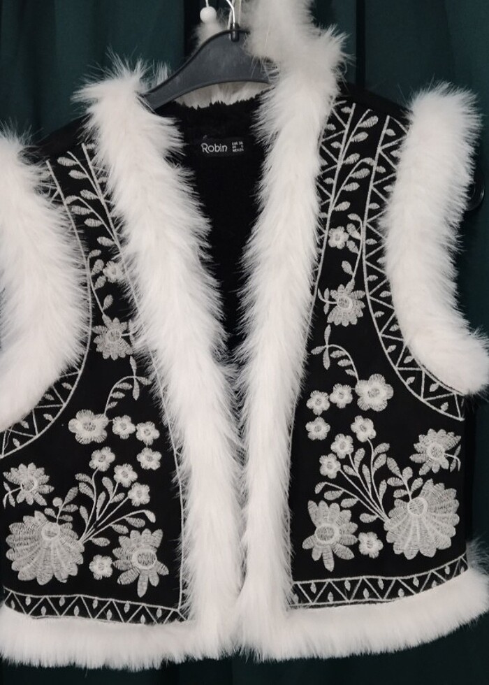 Siyah İçi Kürklü Nakışlı Süet Yelek