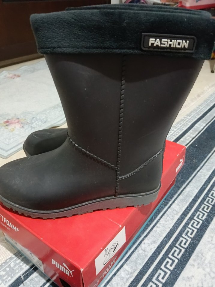 Siyah ici tuylu yagmur cizmesi