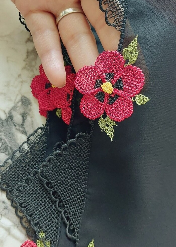 Siyah iğne oyası namaz ortusu