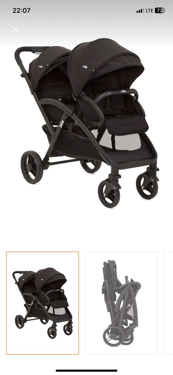 Siyah çift bebek arabası, sağlam çerçeve ve dört tekerlekle kolay hareket sağlar. Güneşlik ve güvenlik barları içerir. İkizler ve kardeşler için uygundur. Farklı yaş gurubu için daha uygun ve ön arka sistem olması hem görüntü hem kullanış açısından artıdır . Bn çok memnunundum artık ihtiyacım kalmadı