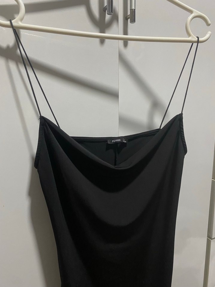 İnce askılı, yumuşak dökümlü siyah elbise. Hafif kumaştan, şık kullanım için uygundur. Hiç giymedim askıları bana uzun geldi tadilatla uğraşmamak için satıyorum