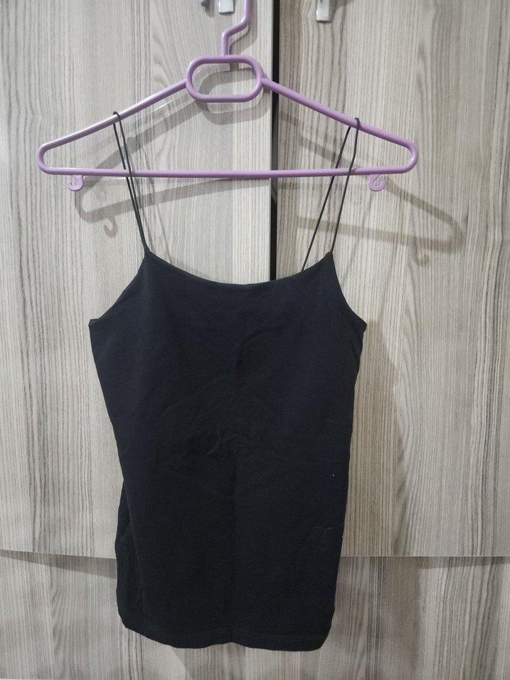 Siyah ince askılı, straplez yaka kadın atlet, düz ve sade tasarımla günlük kullanım için uygun, şık ve rahat bir sokak tarzı sunar.