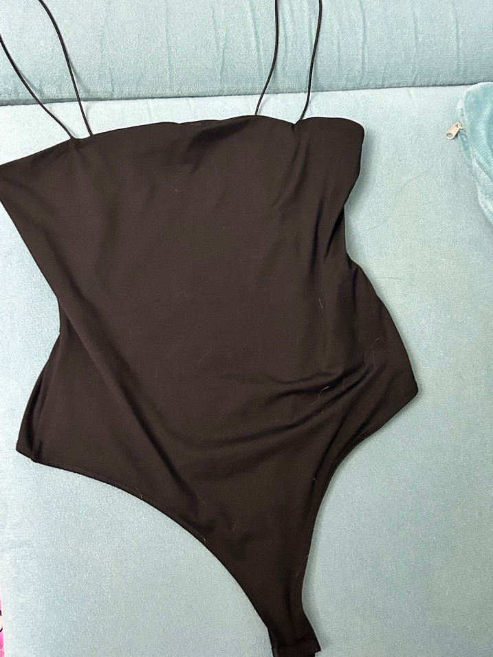 İnce askılı, siyah, vücuda oturan kadın çıtçıtlı body. Midi boy ve koyu renk, minimal ve sokak stilinde, günlük kullanıma uygun rahat şıklık sunar.