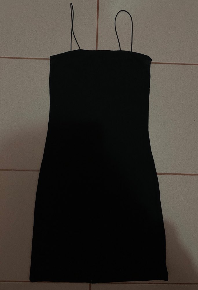 Düz yaka ve kolsuz tasarıma sahip, ince askılı siyah midi elbise, günlük kullanım için zahmetsiz şıklık ve minimalist tarz sunar. İade sürem gectigi icin iade edemedim etiket yok hic kullanılmadı