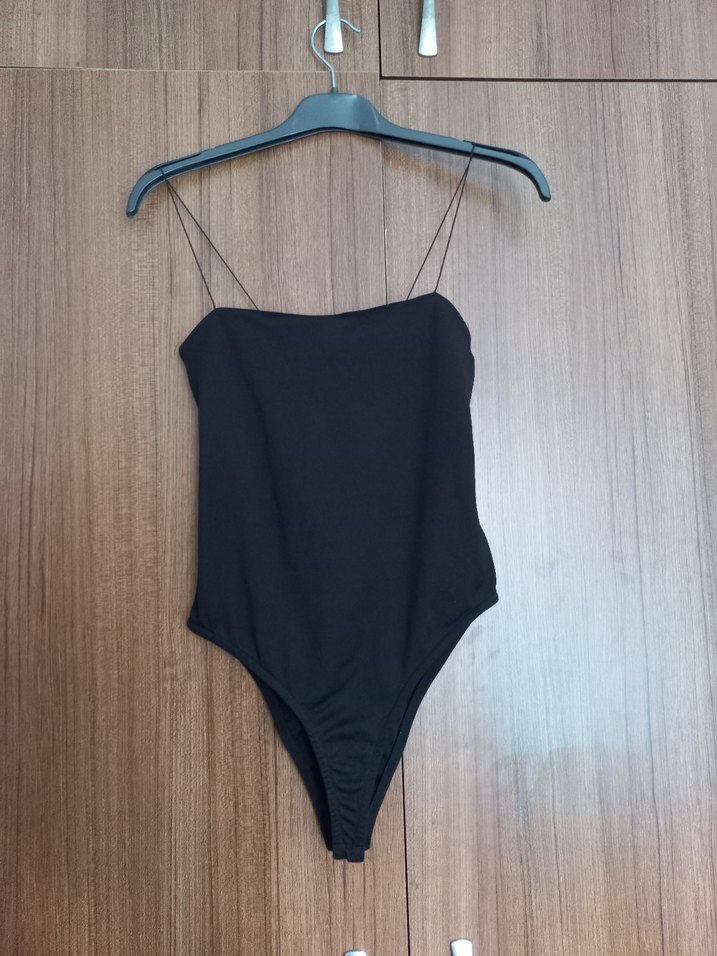 Siyah renkte, ince askılı ve midi boyda, minimalist ve cesur sokak tarzına uygun kadın mayosu.