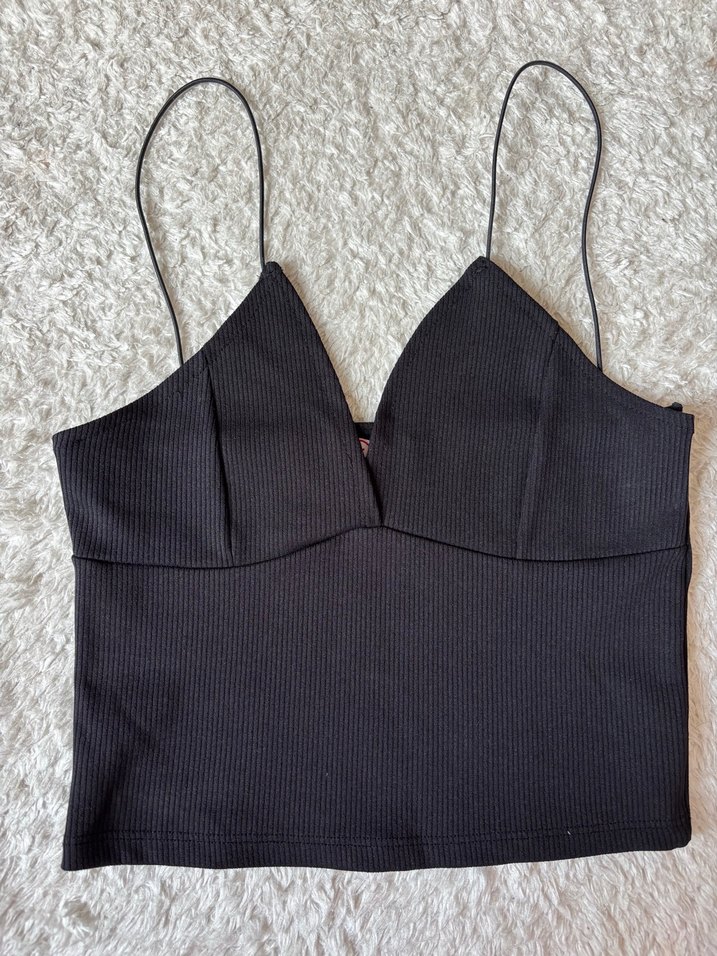 İnce askılı, siyah midi uzunluğunda, fitilli dokulu rahat goth tarzda bralet.