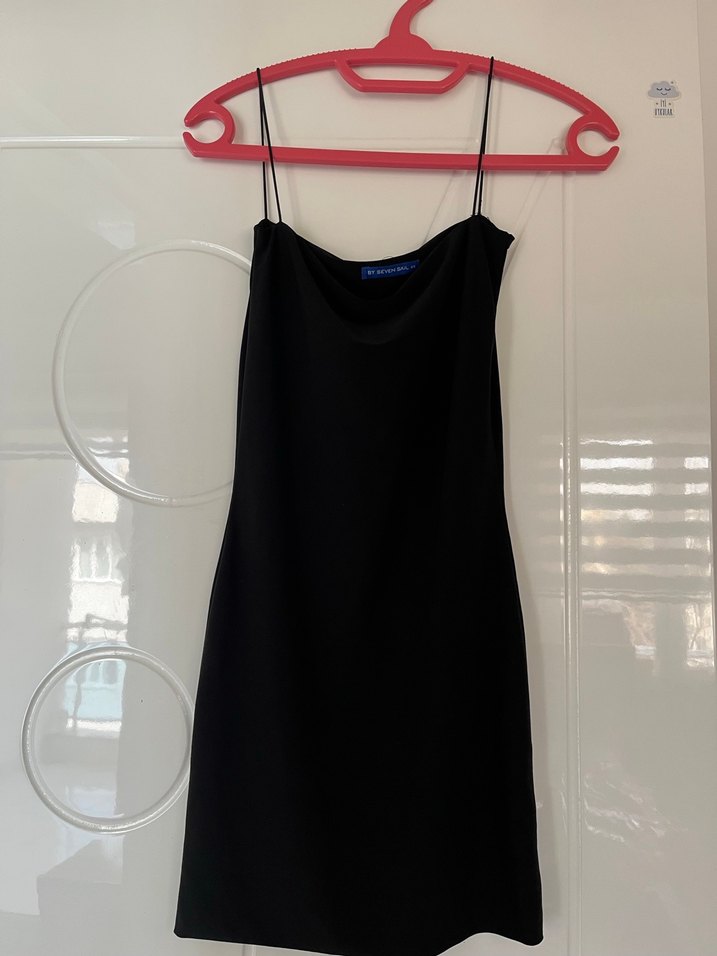 İnce askılı ve straplez yakalı, vücuda oturan siyah midi elbise, romantik akşamlar için zahmetsiz şıklık sunar.