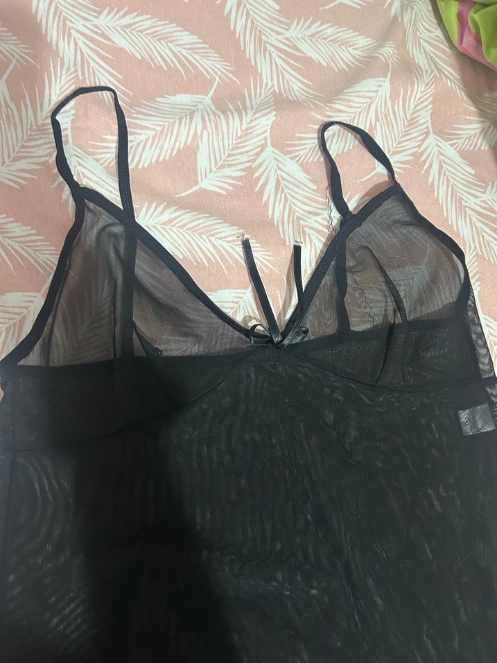 Siyah, ince askılı ve vücuda oturan midi uzunlukta, şeffaf kumaştan yapılmış gotik tarzda kadın gecelik.