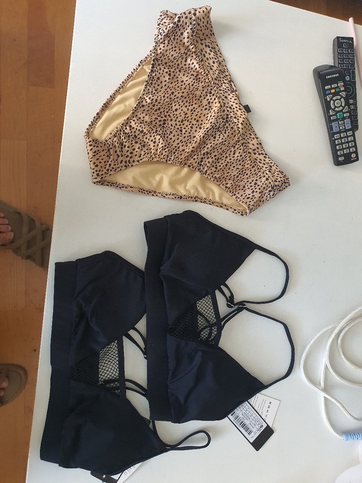 üstleein biri 36 digeri 38 sifir etiketli trendyol marka. tane fiyati son 160. alt 40 beden fiyati 160. tiplu fiyat 3ü icin son 400 kacirmayin. İnce askılı, siyah ve sade tasarımlı bu bikini üstü, şık ve rahat bir görünüm sunar. Mini kesimi ve fit kalıbıyla günlük kullanıma uygundur.